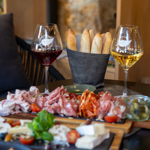 Le déjeuner inclus par personne : un verre de vin, une généreuse ardoise à partager ou un plat au choix, suivi d’un dessert à la carte et d’une boisson chaude pour finir sur une note douce.